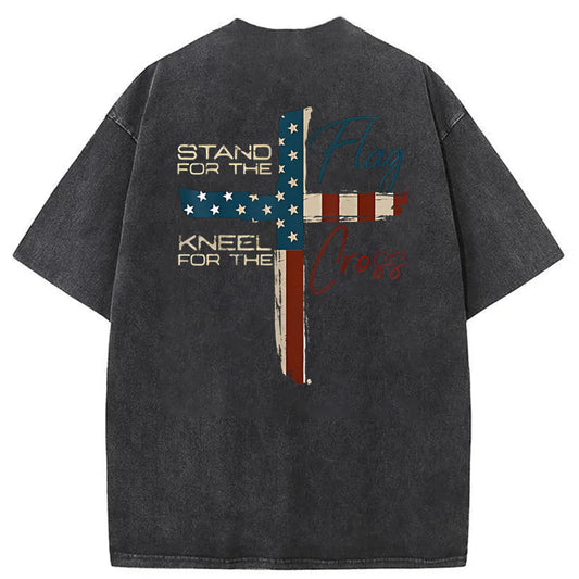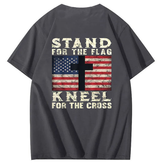 Stand For The Flag Kneel For The Cross Pattern Print 100%Cotton T-Shirt