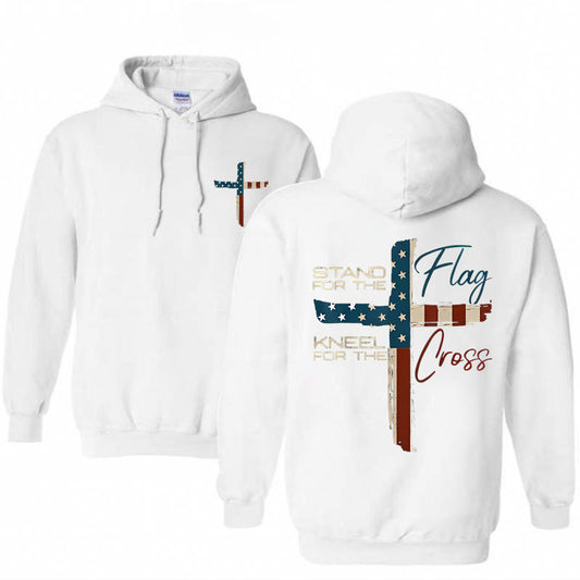 Stand For The Flag Kneel For The Cross 4th Of July Print Hoodie