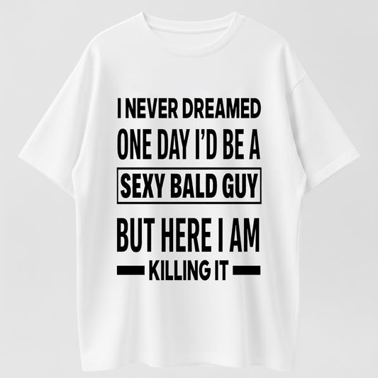 I Never Dreamed I'd Be A Sexy Bald Guy But Here I Am Killing It Funny Bald Man Humor Graphic T-Shirt