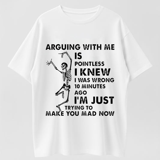 100% Cotton "Arguing with Me Is Pointless" Unisex T-Shirt – Funny Skeleton Humor Tee