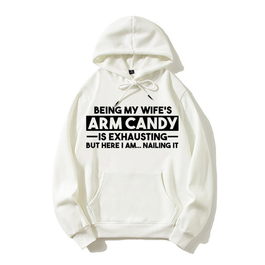 Being My Wife's Arm Candy Is Exhausting But Here I Am Nailing It Funny Husband Graphic Pullover Hoodie