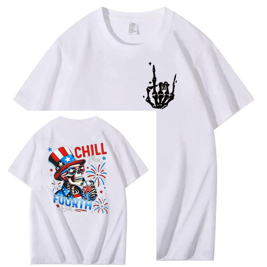 Chill The Fourth Out Skull Pattern Print 100%Cotton T-Shirt