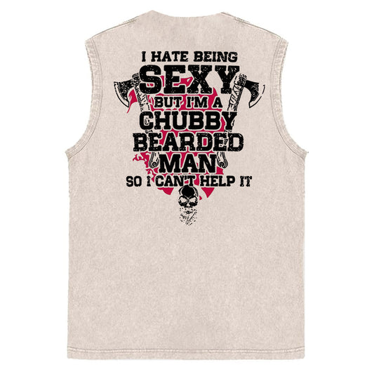 I Hate Being Sexy But I'm A Chubby Bearded Man So I Can't Help It Print Washed Cotton Sleeveless Tank Tops
