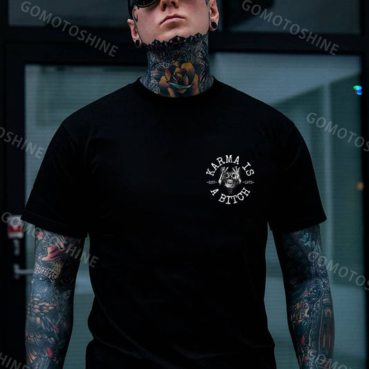 KARMA IS A BITCH Skull With OK Print Men's T-Shirt