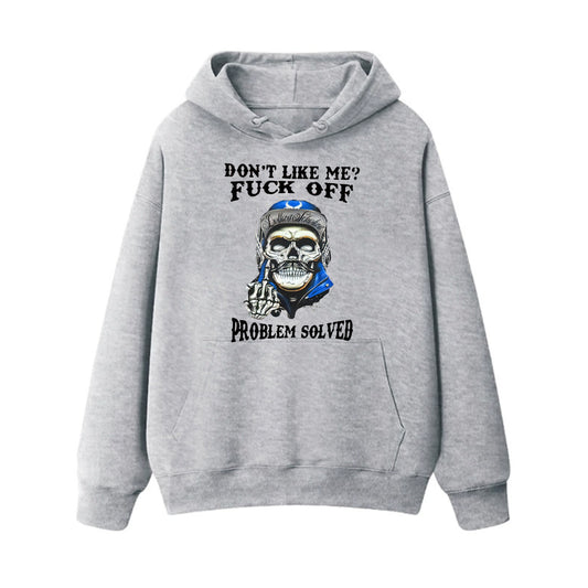 Don't Like Me Fuck Off Problem Solved Pattern Print 100%Cotton Hoodie