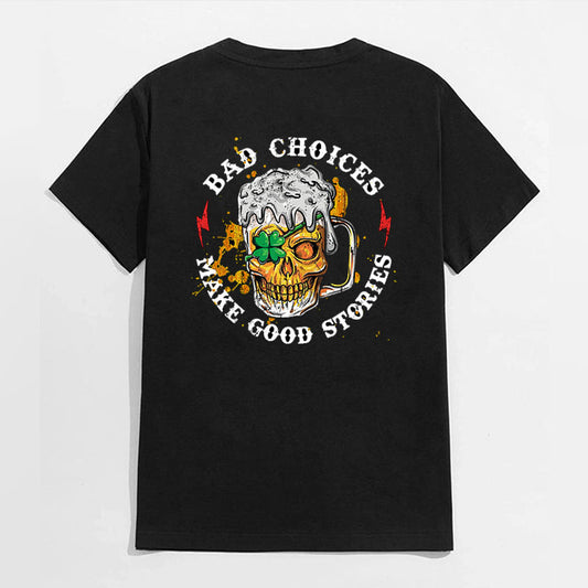 BAD CHOICES MAKE GOOD STORIES Beer Skull Black Print T-shirt