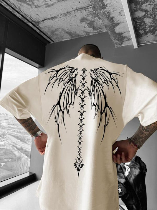 Loose Skeleton Wing Print Drop Shoulder Tee