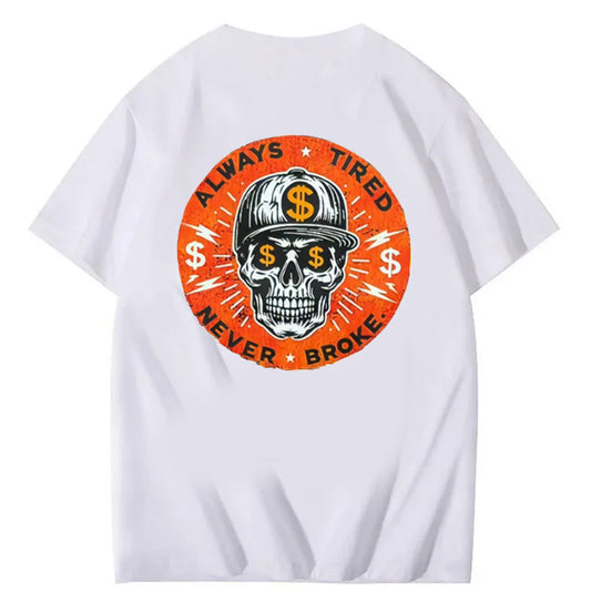 ALWAYS TIRED NEVER BROKE Skull Print Men's T-Shirt