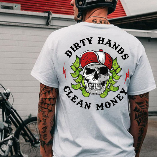 DIRTY HANDS CLEAN MONEY Skull Black Print T-Shirt