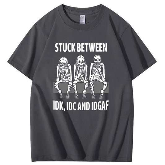Stuck Between IDK,iDC And IDGAF Pattern Print 100%Cotton T-Shirt