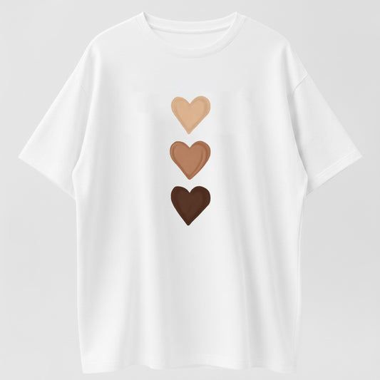 100% Cotton "Three Hearts in Shades of Brown" T-Shirt – Minimalist Love Design