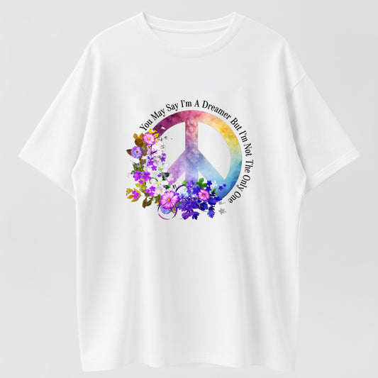 You May Say I'm a Dreamer Peace Floral Organic Cotton Unisex T-Shirt