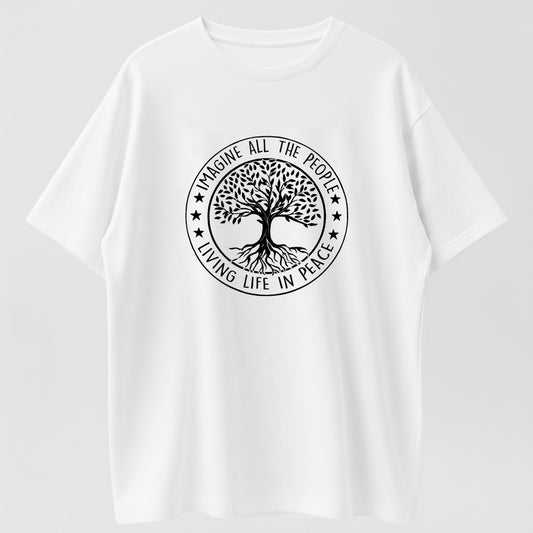 Imagine All the People Living Life in Peace Tree Organic Cotton Unisex T-Shirt