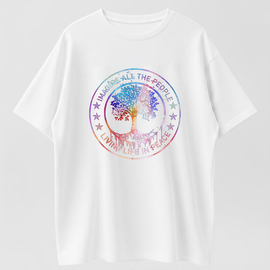 Imagine All the People Living Life in Peace Tree of Life Organic Cotton Unisex T-Shirt