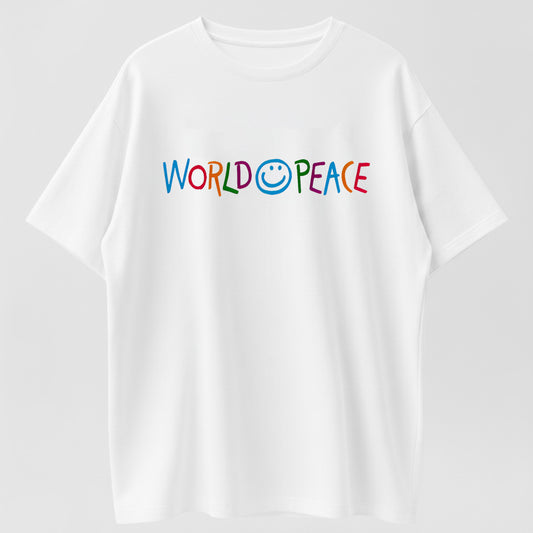 World Peace Smiley Rainbow Organic Cotton Inspirational Unisex T-Shirt