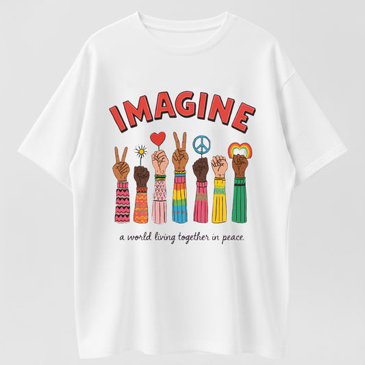 Inspirational Peace Hoodie – 'Imagine' Slogan with Colorful Art for Peace Enthusiasts