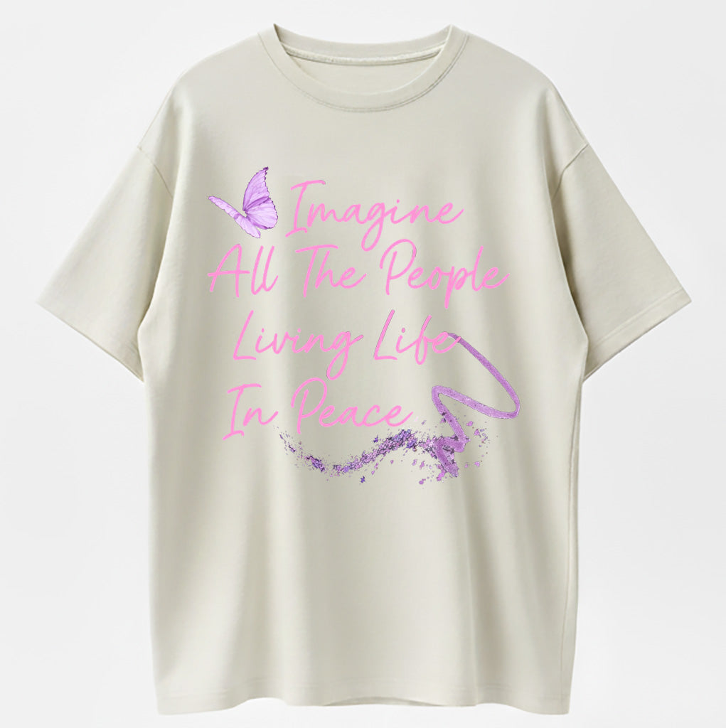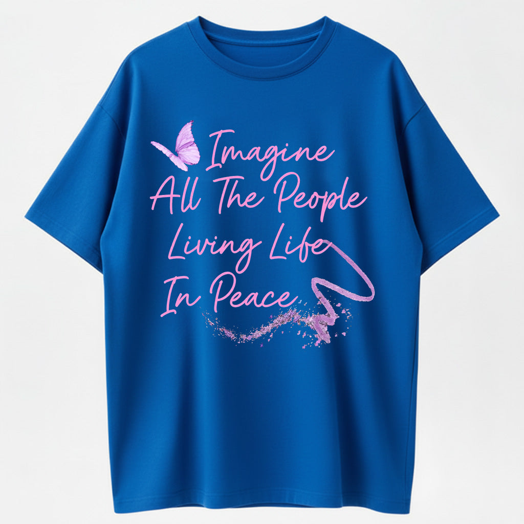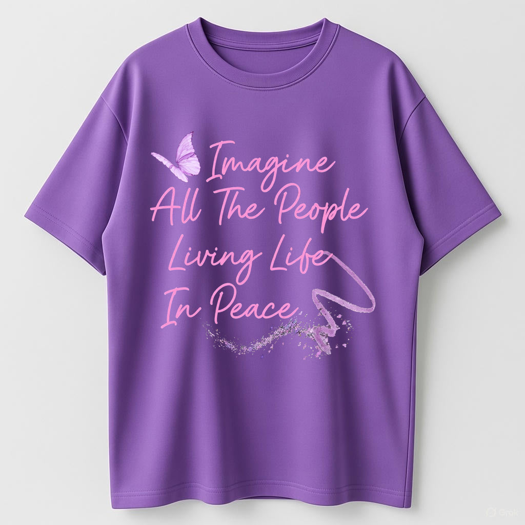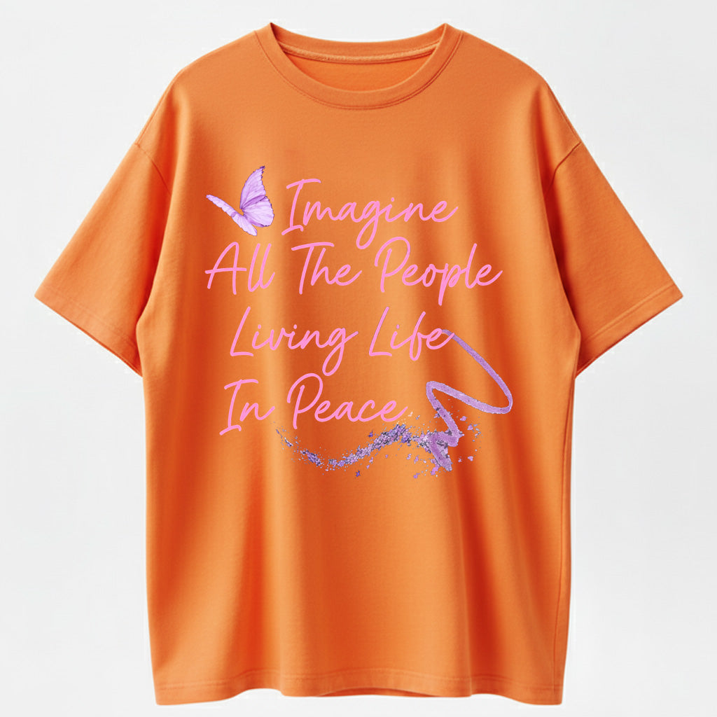 Imagine All the People Living Life in Peace Neon Organic Cotton Unisex T-Shirt