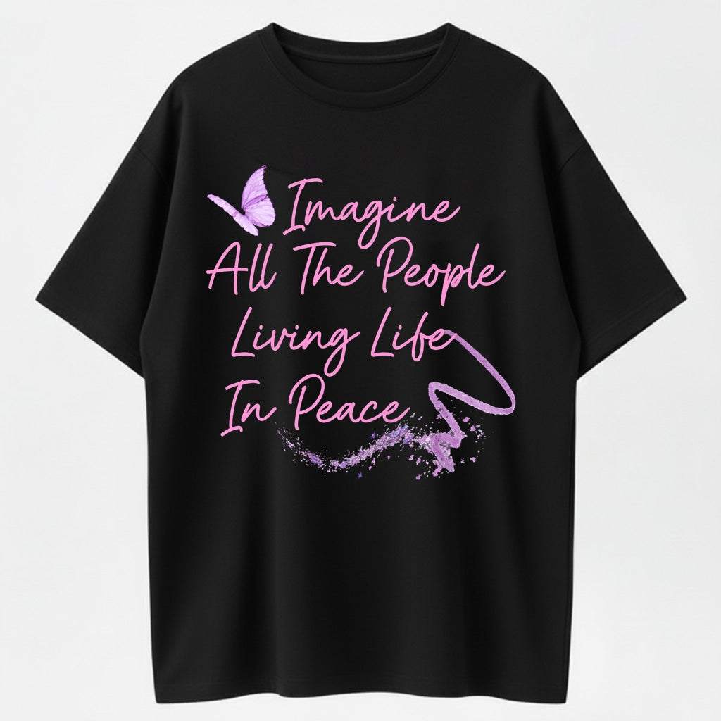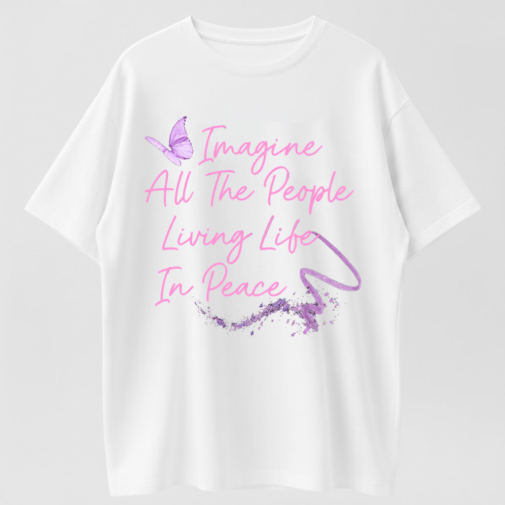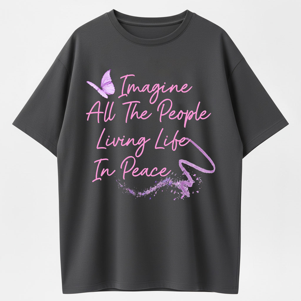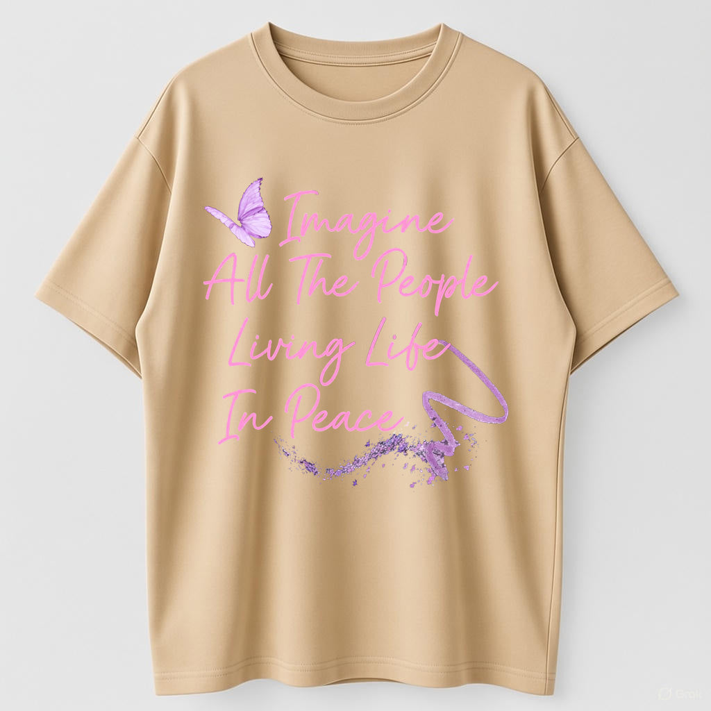 Imagine All the People Living Life in Peace Neon Organic Cotton Unisex T-Shirt