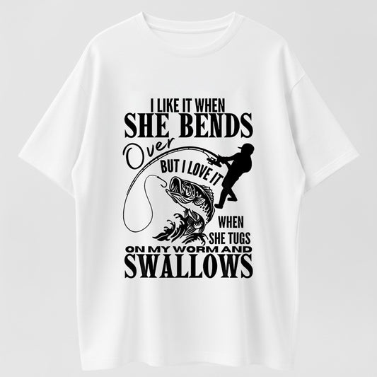 100% Cotton I Like It When She Bends Over Fishing Dad Funny Fathers Day T-Shirt