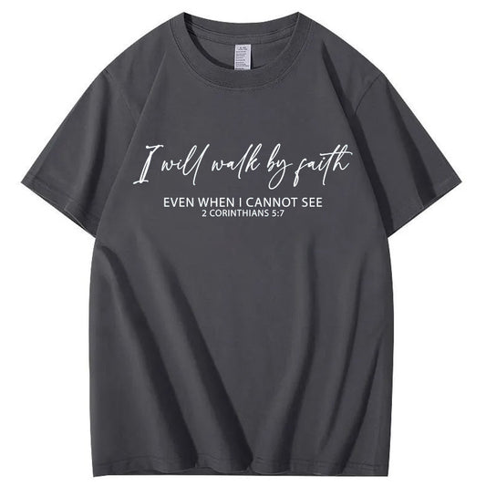 I Will Walk By Faith Print Crew Neck T-Shirt