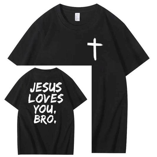 Jesus Loves You Bro Pattern Print 100%Cotton T-Shirt
