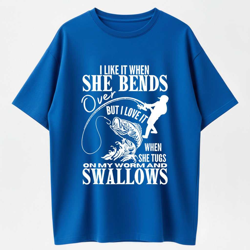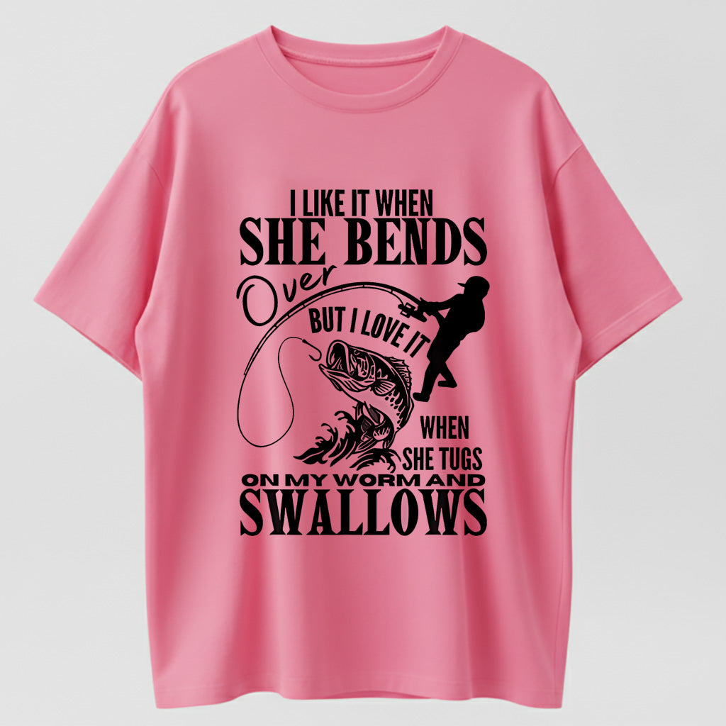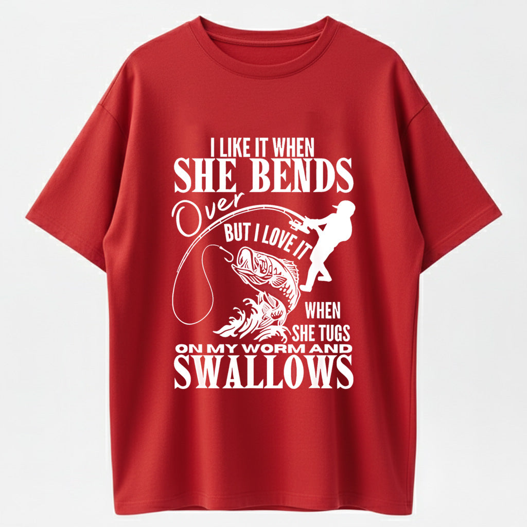 100% Cotton I Like It When She Bends Over Fishing Dad Funny Fathers Day T-Shirt