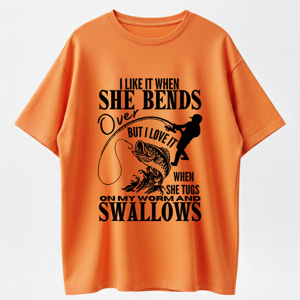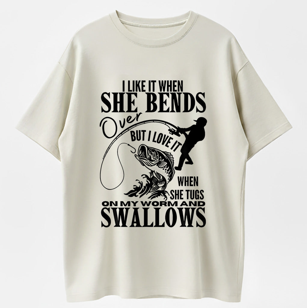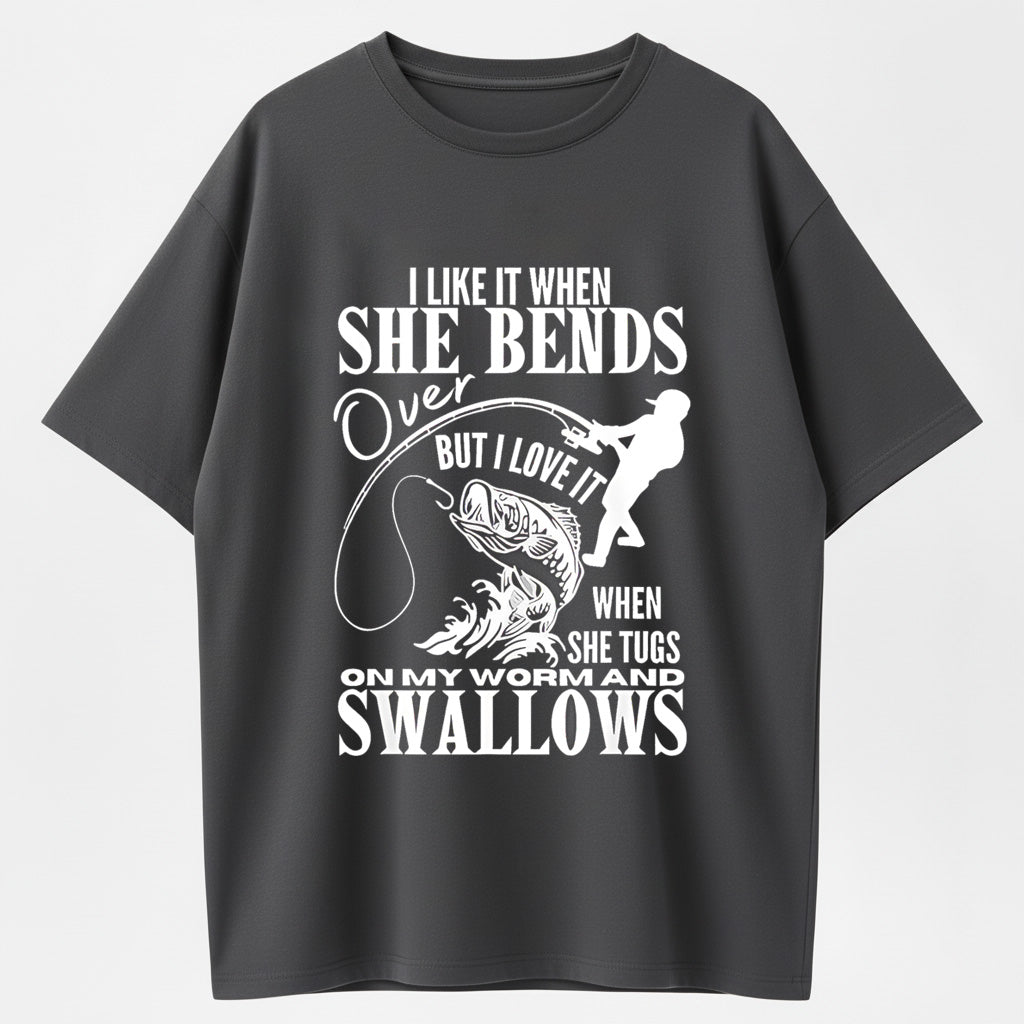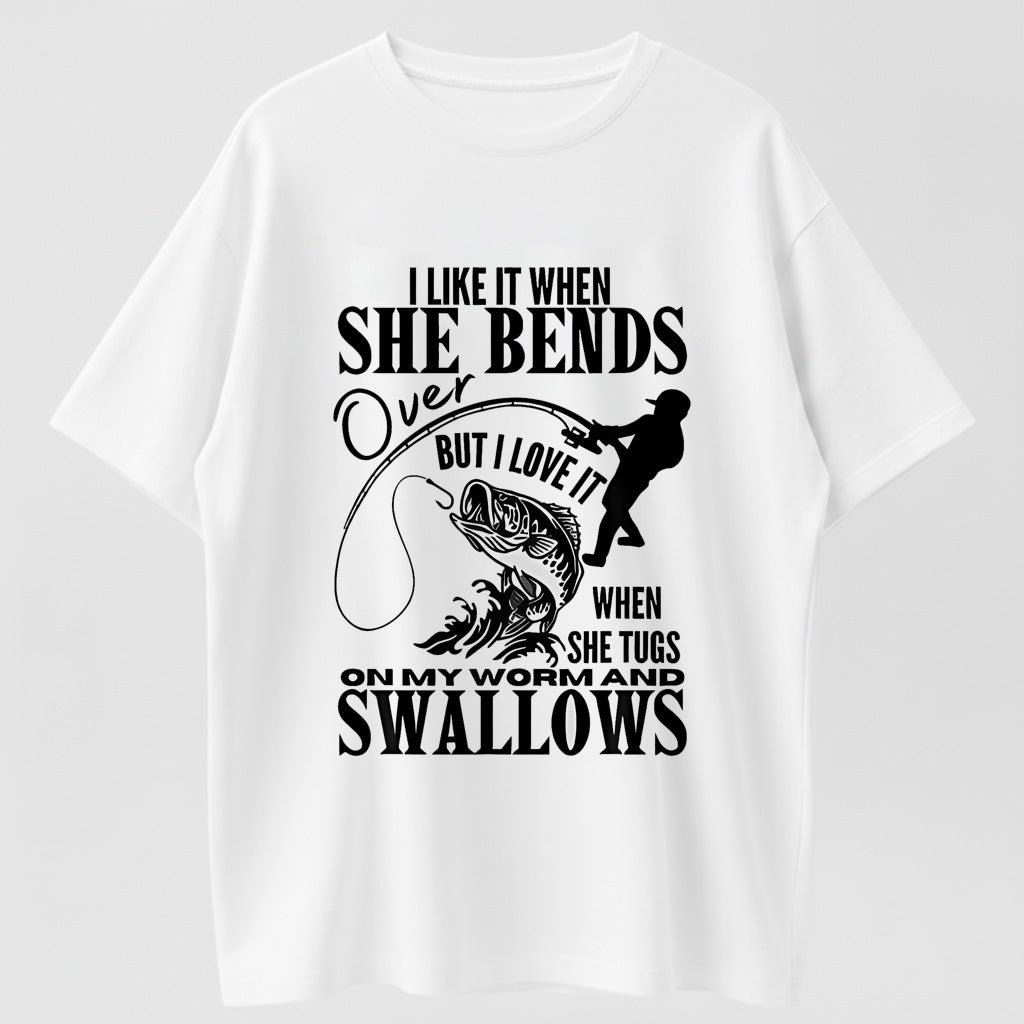 100% Cotton I Like It When She Bends Over Fishing Dad Funny Fathers Day T-Shirt