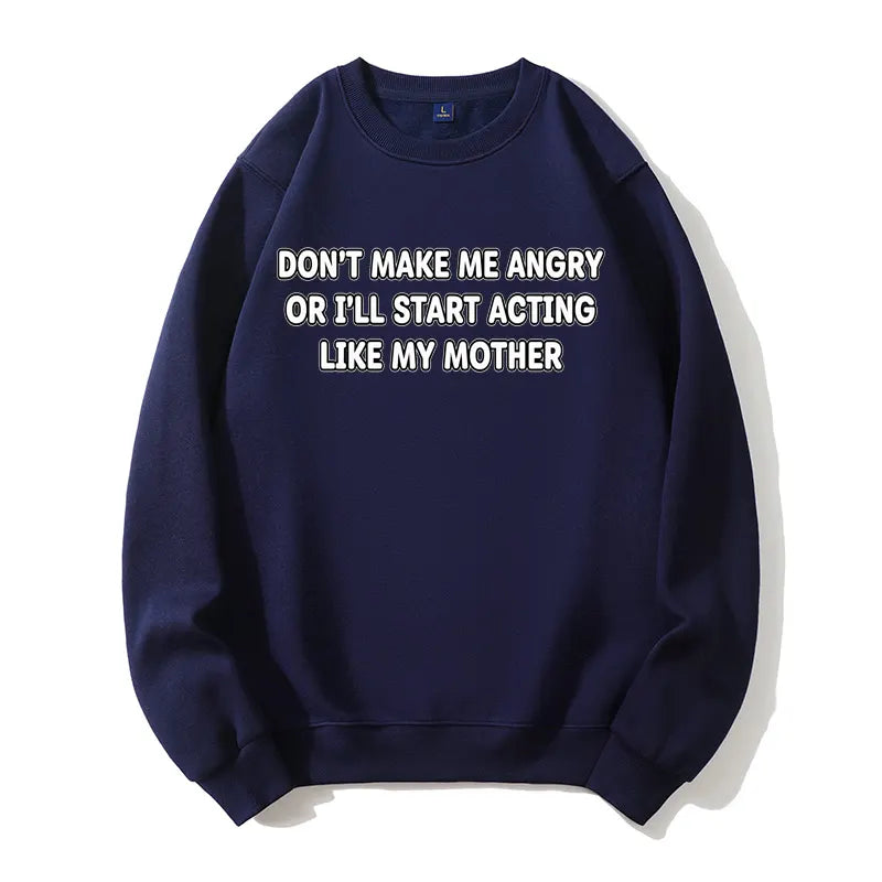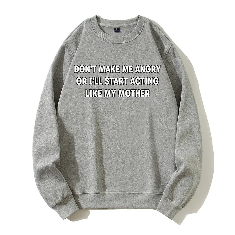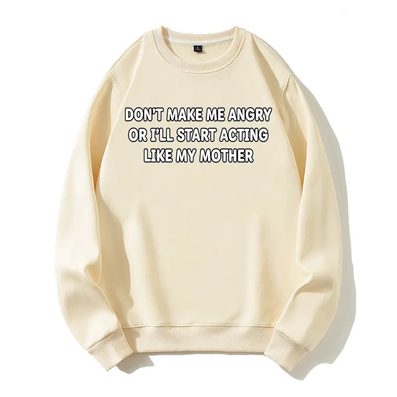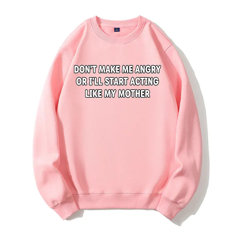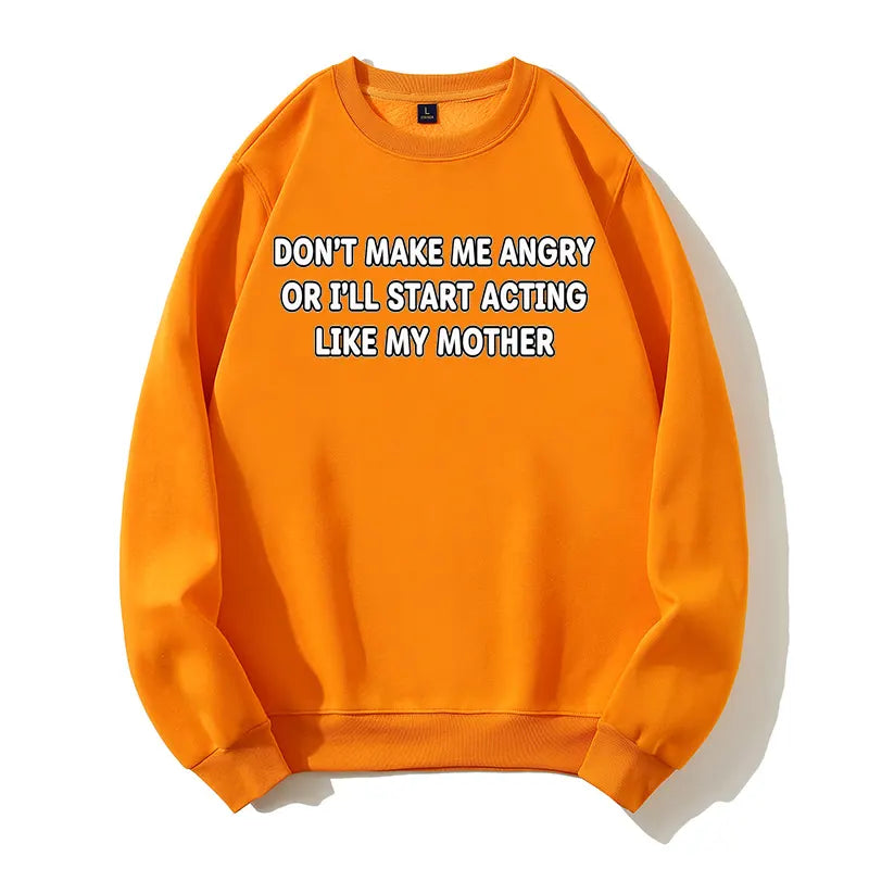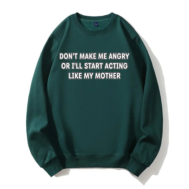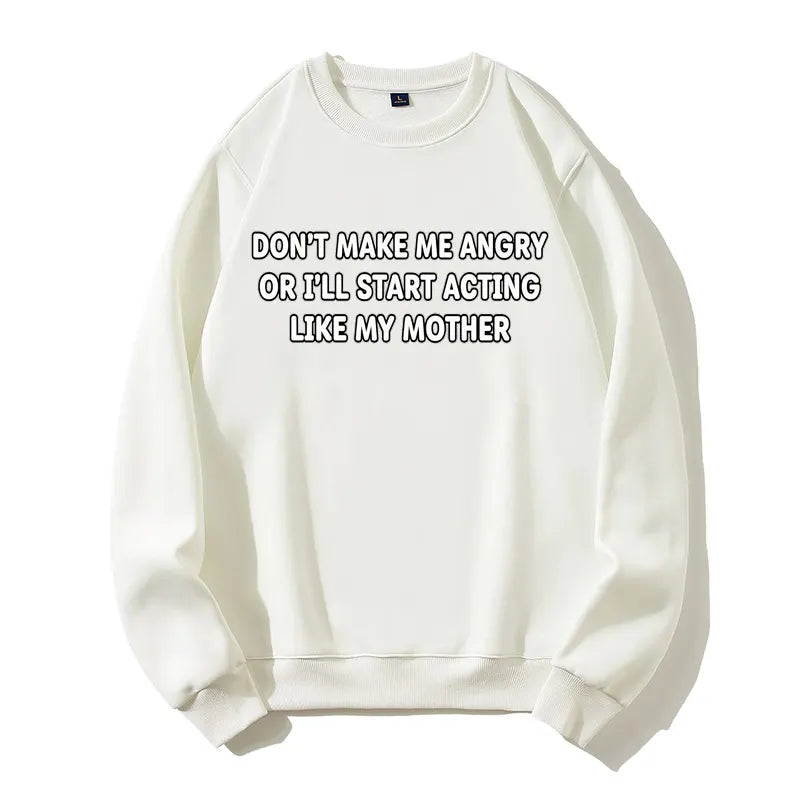 Don't Make Me Angry Like My Mother Funny Sarcastic Organic Cotton Unisex Sweatshirt