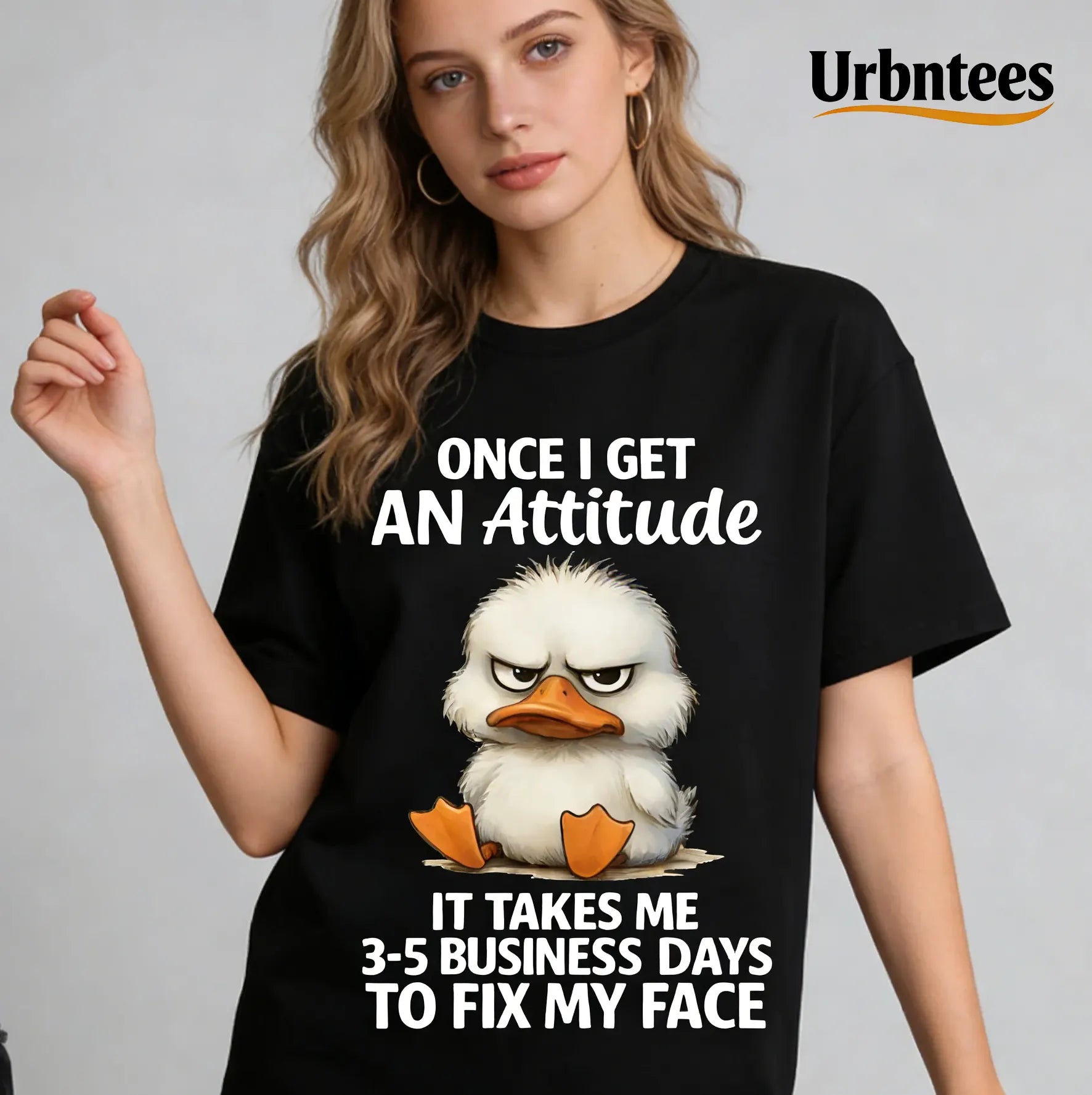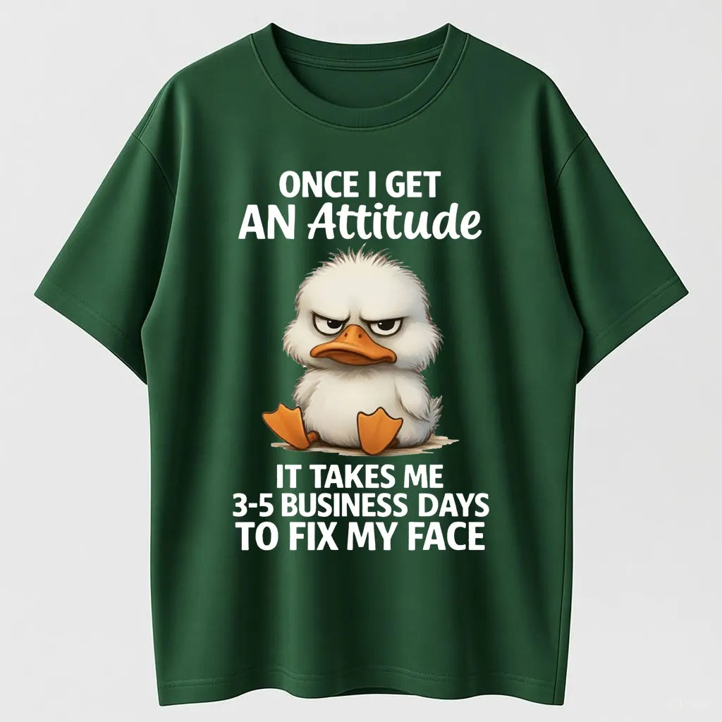 Urbntees Attitude Takes 3-5 Business Days to Fix My Face Funny Duck Organic Cotton Unisex T-Shirt