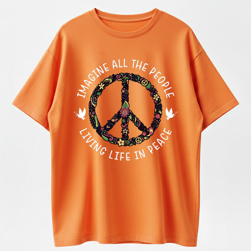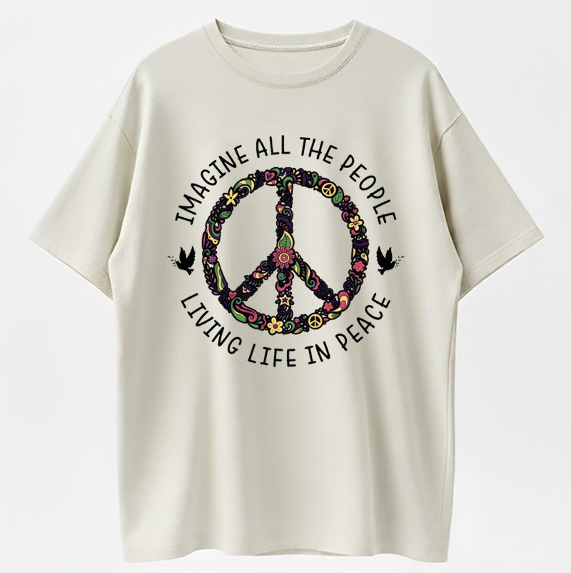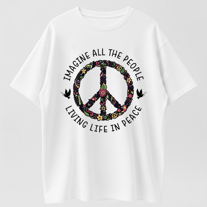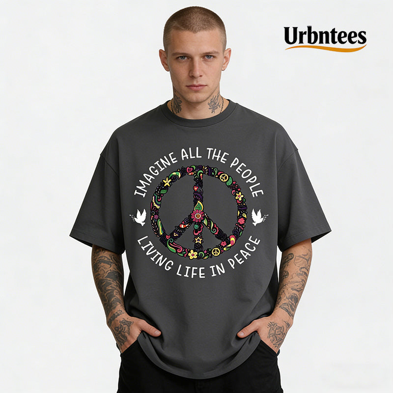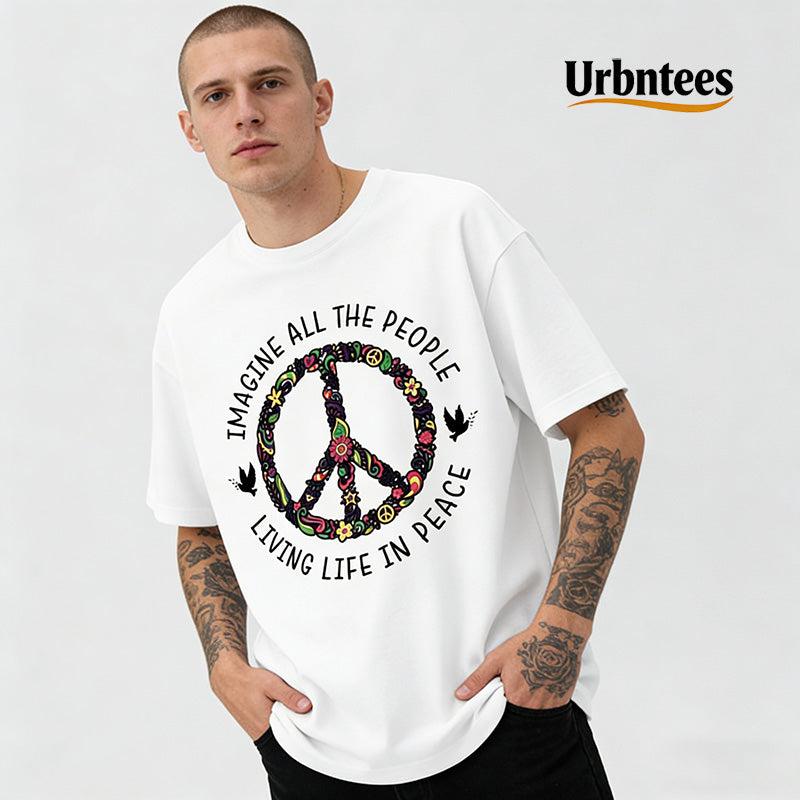 Urbntees Imagine All the People Living in Peace Hippie Floral Organic Cotton Unisex T-Shirt