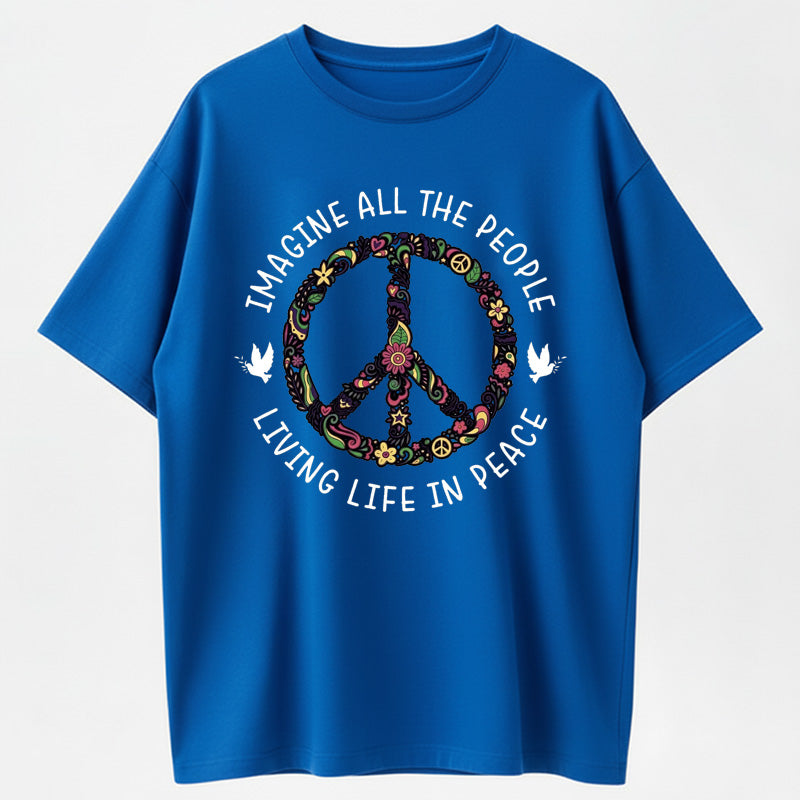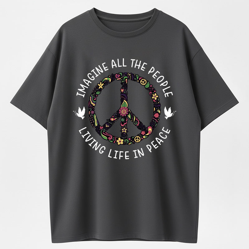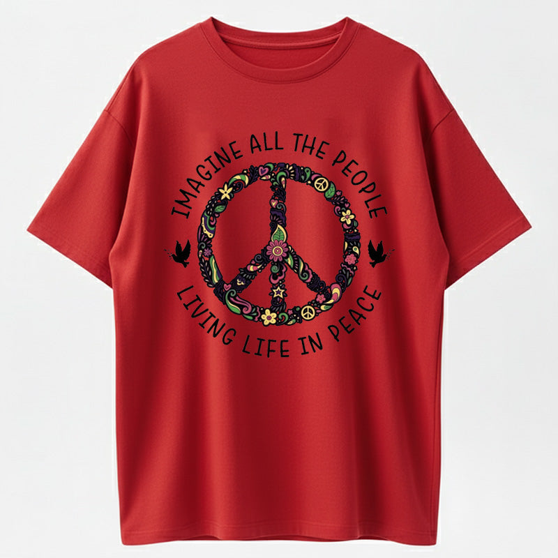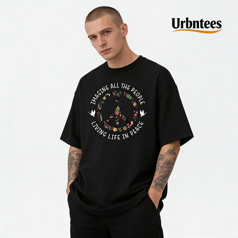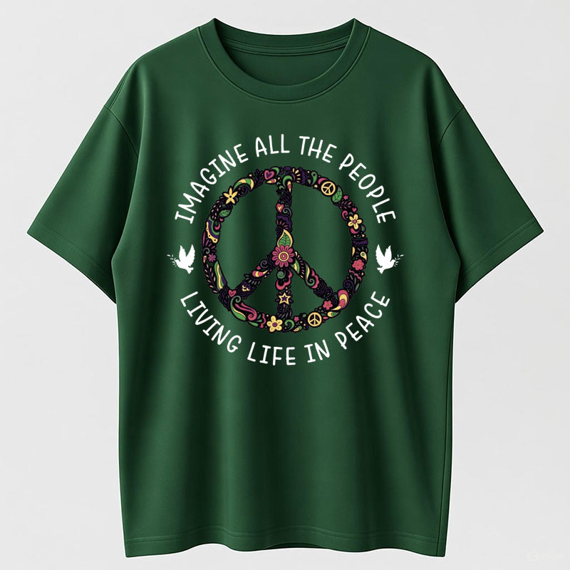 Urbntees Imagine All the People Living in Peace Hippie Floral Organic Cotton Unisex T-Shirt