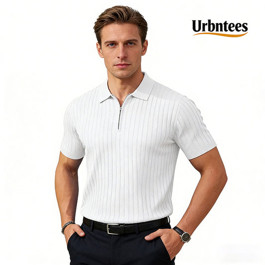 Men's Zipper Short Sleeve Ribbed Knit Polo T Shirts Golf Shirts