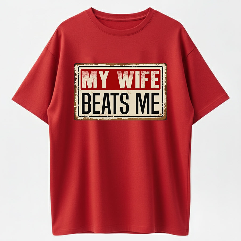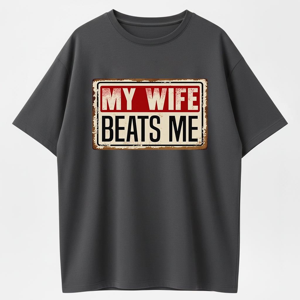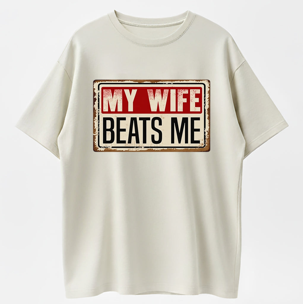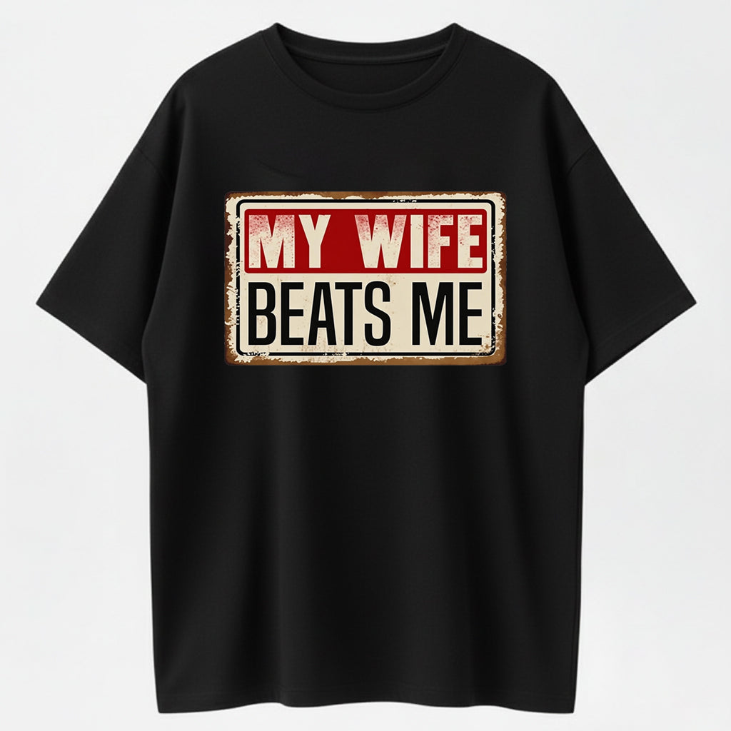 Cotton Short Sleeve T-Shirt Funny My Wife Beats Me Shirt