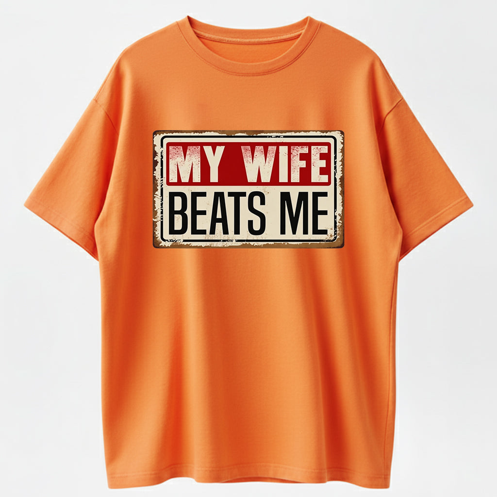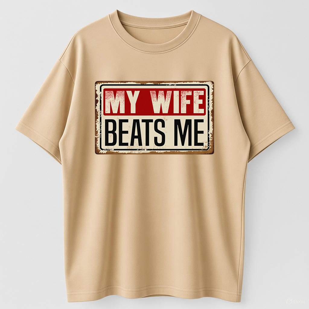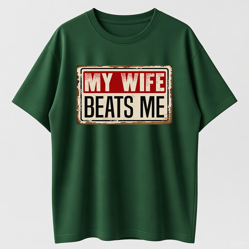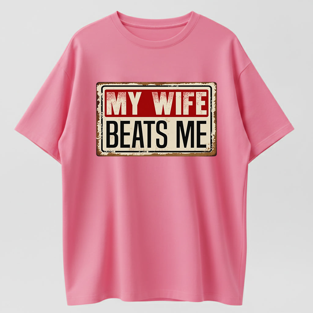 Cotton Short Sleeve T-Shirt Funny My Wife Beats Me Shirt