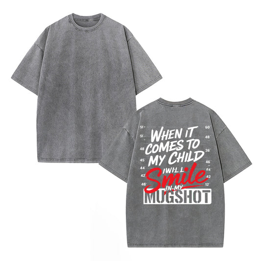 When It Comes To My Child Smile In My Mugshot Vintage Washed Tee
