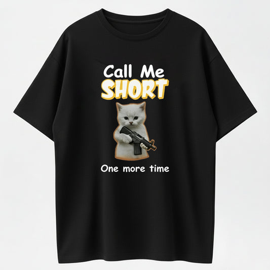 100% Cotton "Call Me Short One More Time" Funny Cat Meme Graphic T-Shirt