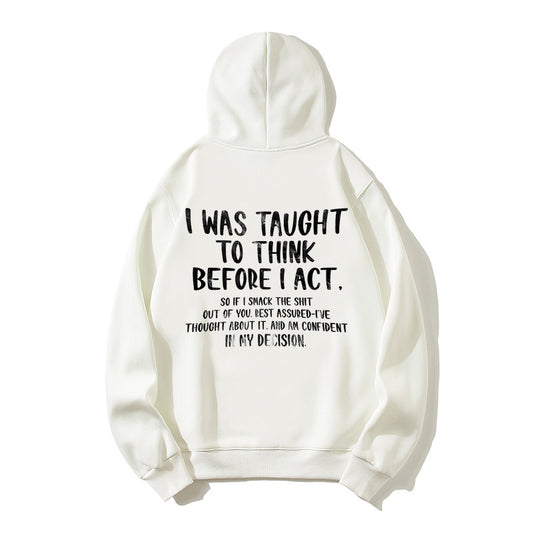 100% Cotton "I Was Taught to Think Before I Act" Hoodie – Bold Humor Sweatshirt