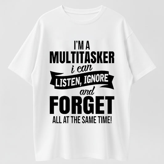 100% Cotton I'm A Multitasker (Listen, Ignore & Forget) Humor Graphic T-Shirt