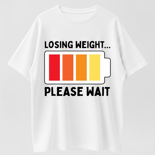 Losing Weight Please Wait Funny Low Battery Gym Motivation Graphic T-Shirt