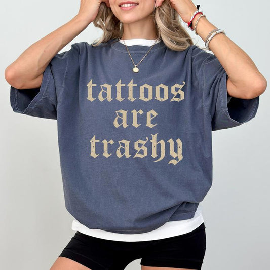 Retro Tattoos Are Trashy Shirt, Funny Sayings Tattoos Are Stupid Graphic Tee, Gothic Tattoo T-shirt, Funny Gift For Tattoos Lover