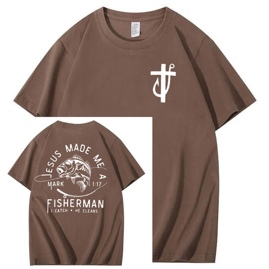 Jesus Made Me A Fisherman Pattern Print 100%Cotton T-Shirt