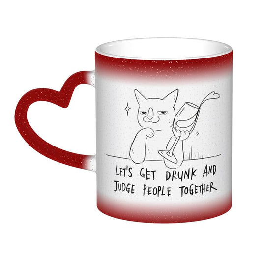 Let's Get Drunk And Judge People Together Sarcastic Cat Heat-Activated Color Changing Mug
