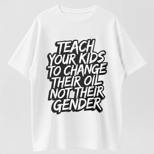 TEACH YOUR KIDS TO CHANGE THEIR OIL NOT THEIR GENDER T-shirt