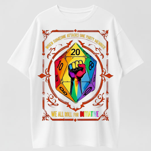 D&D Inspired Rainbow D20 T-Shirt – Unite & Roll for Initiative in Style
