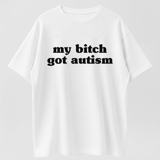 Meme Shirt My B*tch Got Autism Funny T-Shirt-100% Cotton