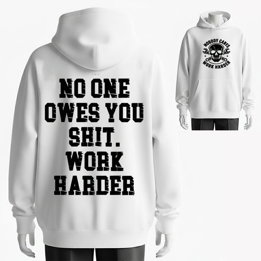 100% Cotton 'Work Harder' Skull & Wrench Graphic Hoodie