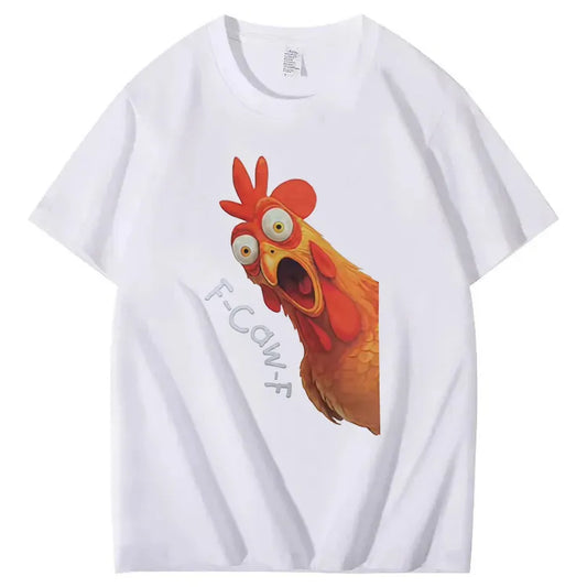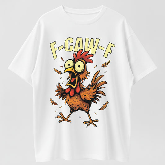 Funny Chicken F Caw F Graphic Tee: Rooster Meme Shirt