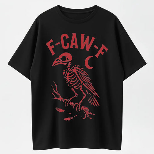 F-CAW-F Crow Skeleton Graphic Halloween T-Shirt