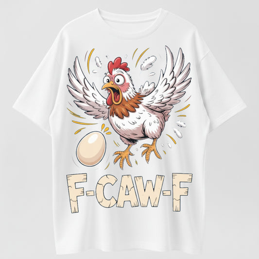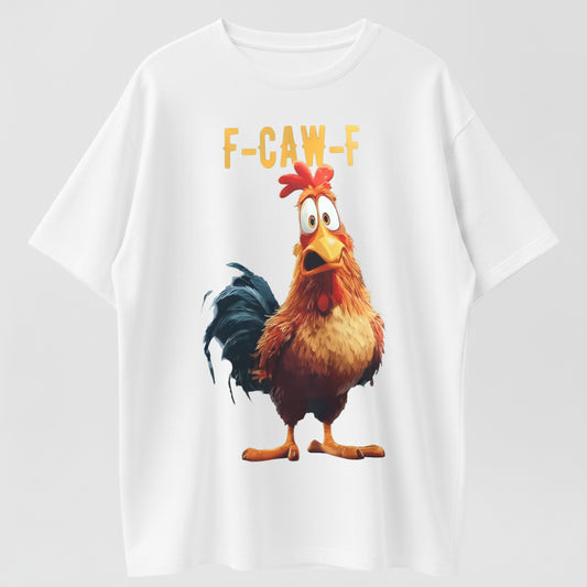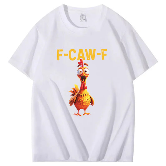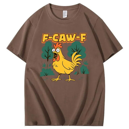 Humorous Rooster Graphic T-Shirt – 'F-CAW-F' Funny Design for Bold Personalities