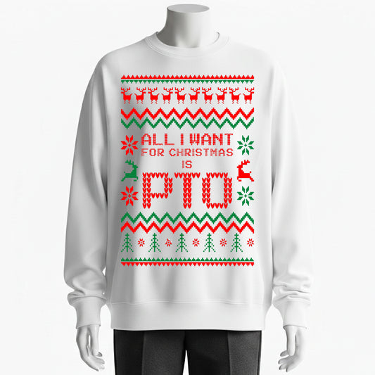 100% Cotton "All I Want for Christmas Is PTO" Holiday Sweater